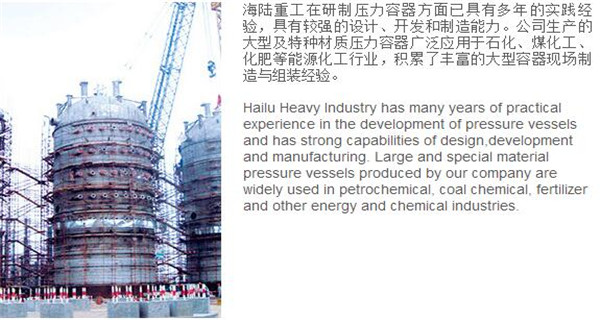 蘇州海陸重工股份有限公司位于江蘇省張家港市開發(fā)區(qū),是國內(nèi)一流的節(jié)能環(huán)保設備的專業(yè)設計制造企業(yè),目前并已初步形成鍋爐產(chǎn)品、大型壓力容器、核電設備、低溫產(chǎn)品、環(huán)保工程共同發(fā)展的業(yè)務格局。公司創(chuàng)建于1956年,注冊資本51640萬元,占地面積近50萬平米。公司下設八個控股子公司,一個余熱鍋爐研究所,在瑞士、北京、武漢、南京、上海、杭州、廣州等地設立分支機構,擁有雄厚的研發(fā)實力。公司秉承“科技領航、業(yè)界先鋒”的發(fā)展理念,注重研究廢熱、余熱利用和環(huán)境保護相結合的新技術研發(fā),自主設計能力居同行前列;公司承擔過國家863計劃,江蘇省科技成果轉化專項資金,榮獲國家科技進步二等獎,產(chǎn)品擁有核心自主知識產(chǎn)權并取得專利50多項;公司推行國際先進的管理體系標準和認證,擁有 A級鍋爐制造許可證,A1、A2、A3級壓力容器設計和制造許可證,取得了民用核承壓設備制造資格許可證、美國機械工程師學會(ASME)“S”、“U”鋼印,通過了ISO9001質(zhì)量體系認證、健康體系認證和14000環(huán)境體系認證;公司設備先進,裝備精良,專業(yè)嚴謹?shù)闹圃炖砟畲蛟斐銎焚|(zhì)非凡、質(zhì)量一流的“海陸”品牌聲譽。